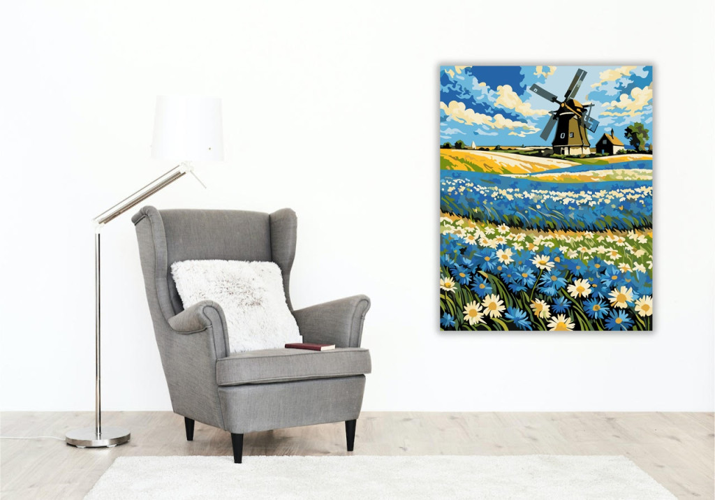 Számfestő készlet – Szélmalom Virágmező Álma – 40×50 cm (Keret nélkül)