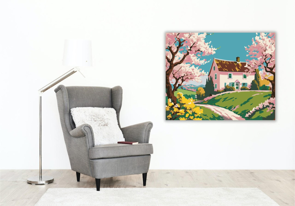 Számfestő készlet – Virágzó Tavaszi Otthon – 40×50 cm (Keret nélkül)