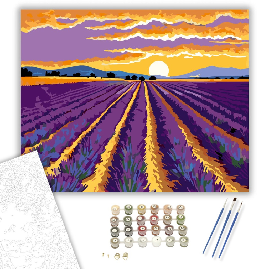 Számfestő készlet – Levendulamezők Alkonyatkor – 60×70 cm (Keretre feszítve)
