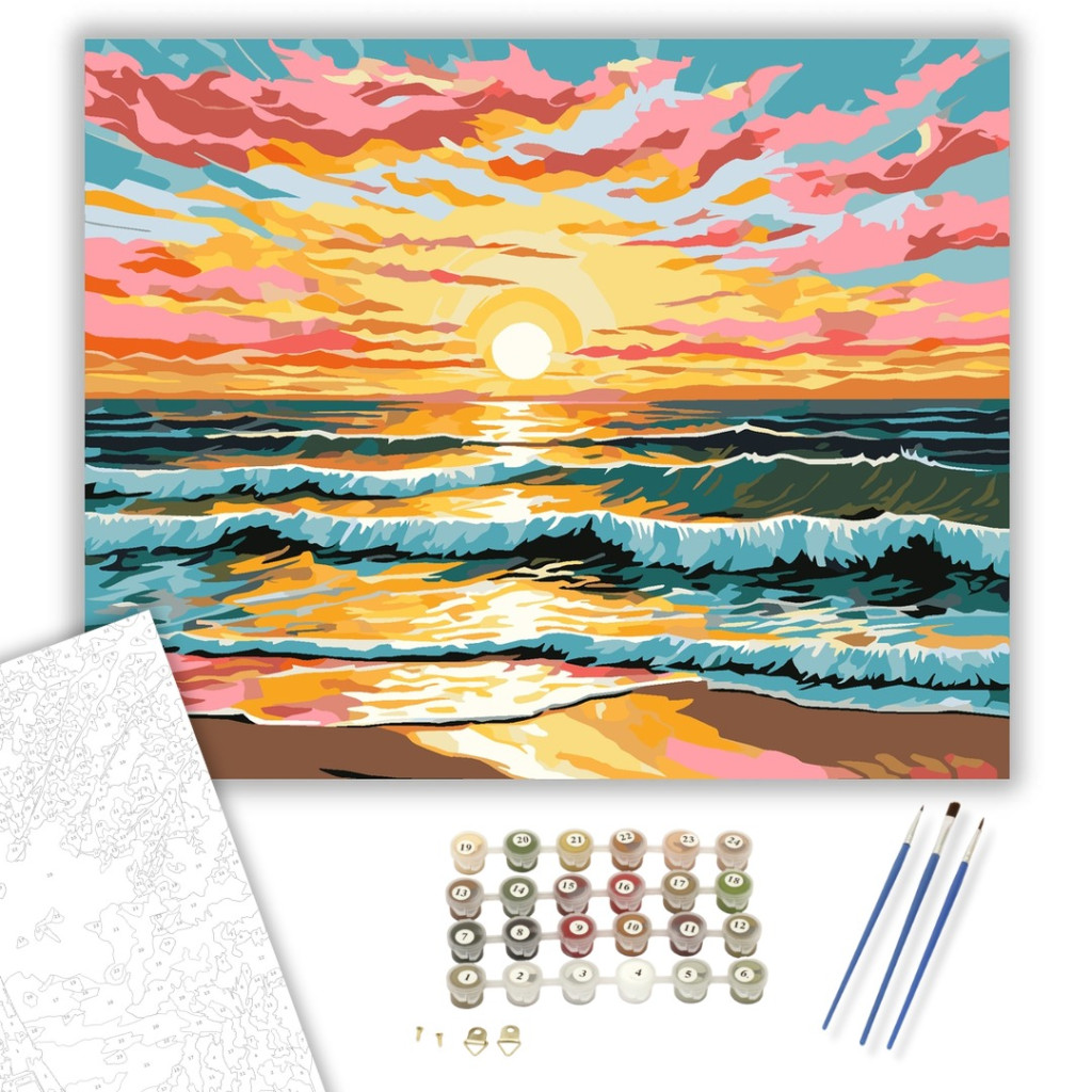 Számfestő készlet – Naplemente Tengerparti Harmóniája – 40×50 cm (Keret nélkül)
