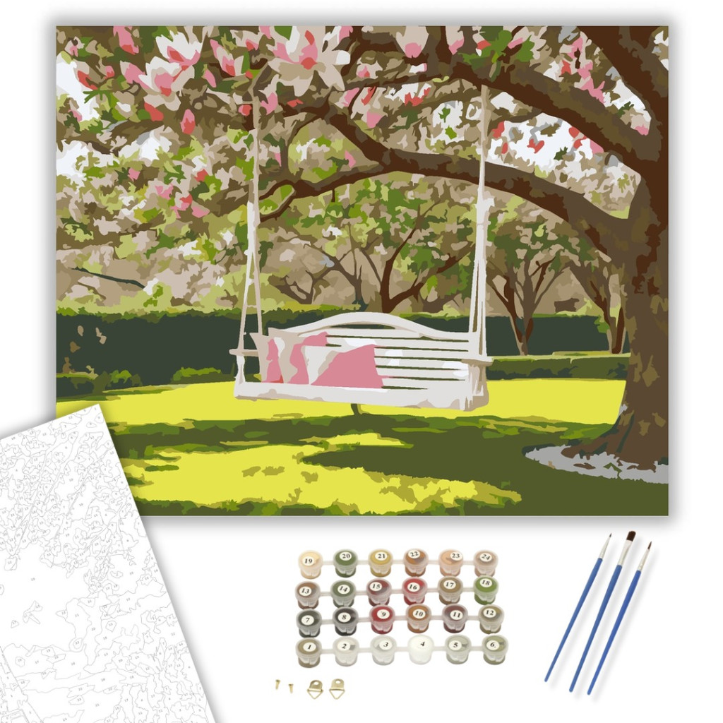 Számfestő készlet – Virágzó Magnólia Hinta – 60×70 cm (Keret nélkül)