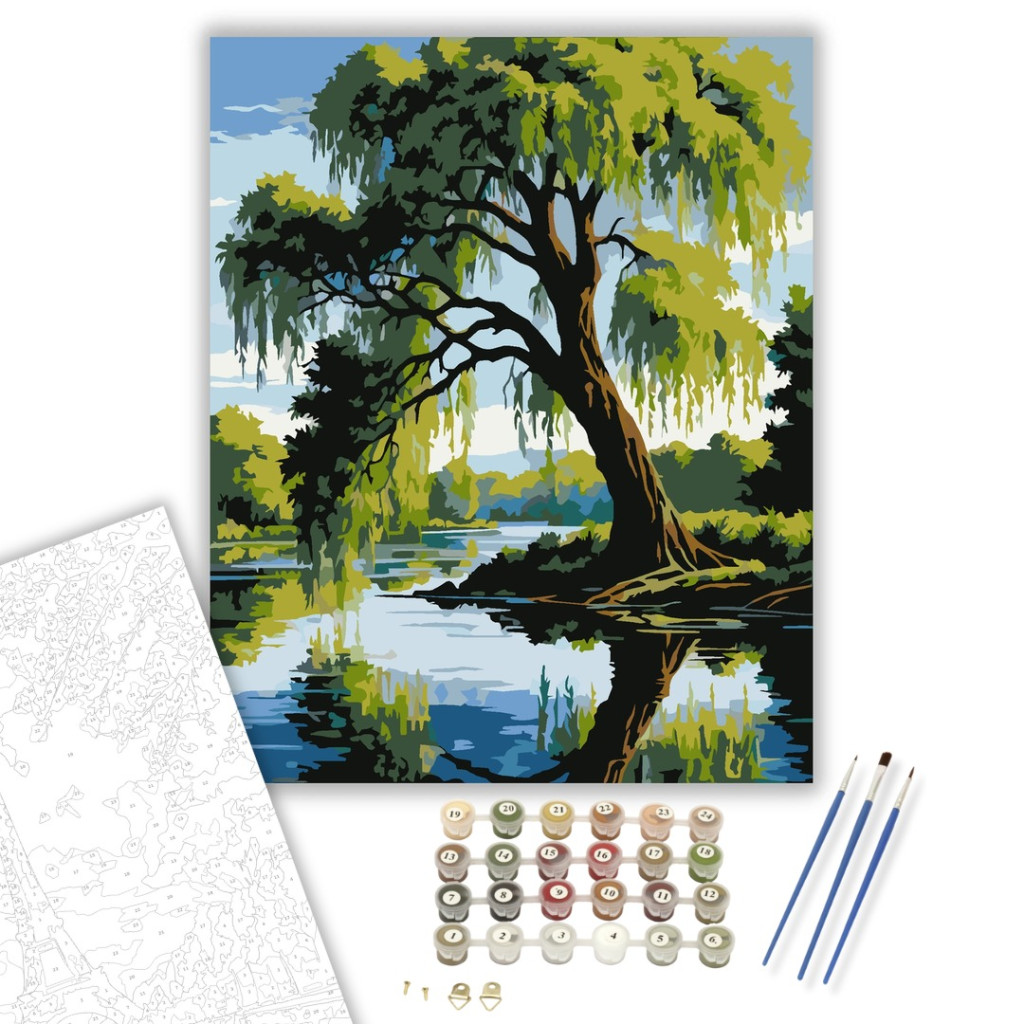 Számfestő készlet – Fűzfa a Nyugodt Folyó Partján – 40×50 cm (Keret nélkül)