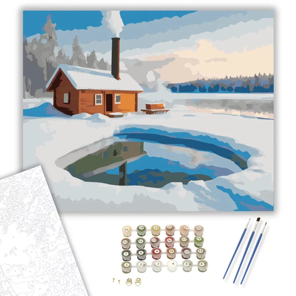 Számfestő készlet – Téli Szauna a Fagyott Tavon – 40×50 cm (Keret nélkül)