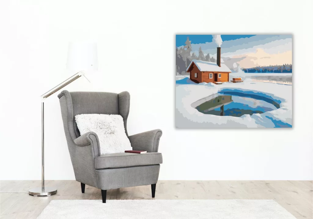 Téli Szauna a Fagyott Tavon - számfestő készlet - Számfestő.hu - 40×50cm - keret nélkül
