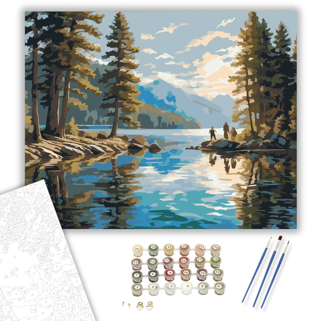 A festmény egy napfényes tavat ábrázol, ahol barátok kavicsokat hajigálnak, miközben a víz tükrözi a környező fákat és hegyeket. A kép élénk színekben pompázik, a napfény játékával a hullámokon. Vidám és barátságos hangulatot áraszt, a természet és a közösség örömét közvetítve. Legyen a lakásod dísze vagy egy kedves meglepetés valaki számára – ez a számfestő készlet tökéletes választás mindkettőre. A készletben mindent megtalálsz, amivel lépésről lépésre megalkotható ez a gyönyörű festmény.
