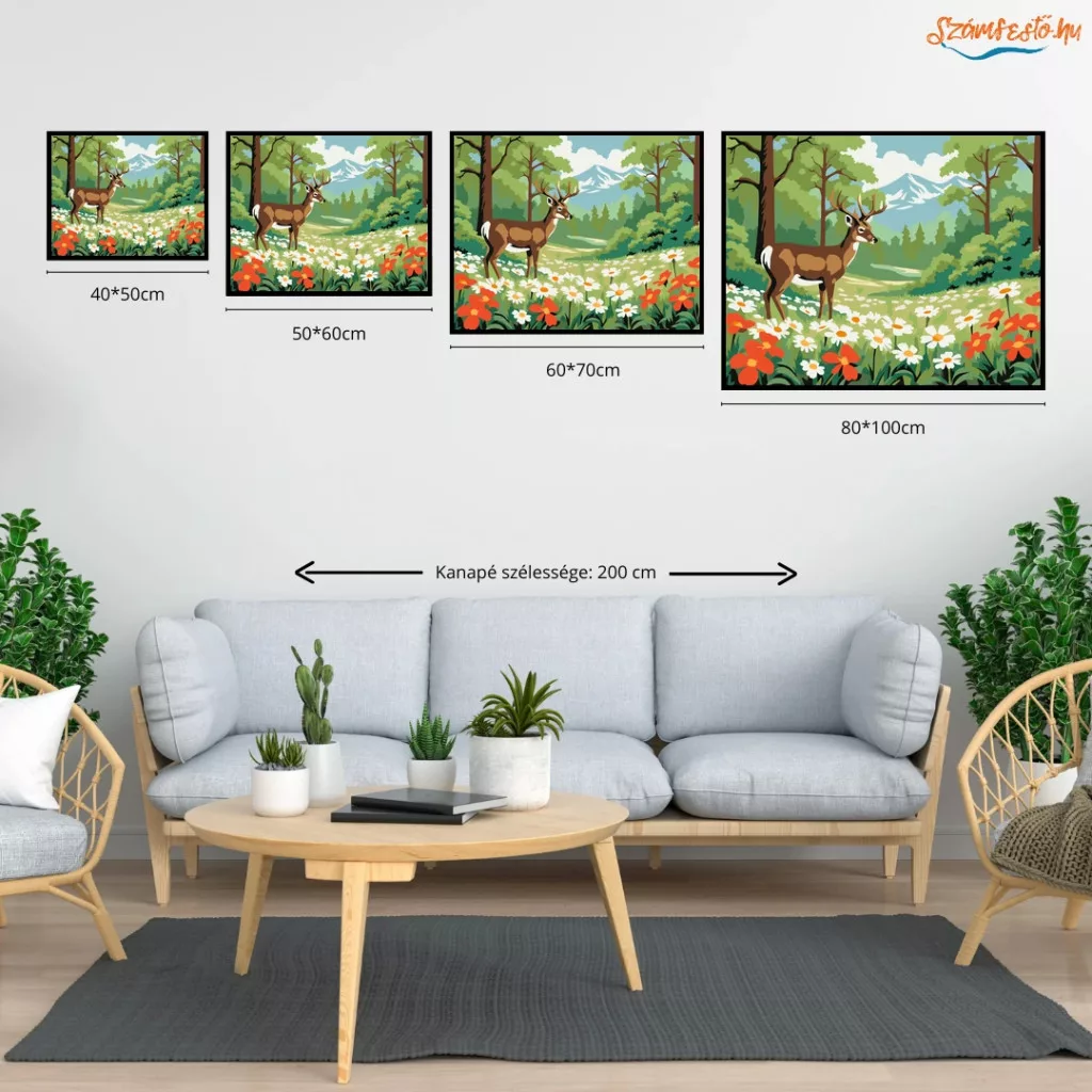 Szarvas a virágtengeren - számfestő készlet - Számfestő.hu - 40×50cm - Keret nélkül