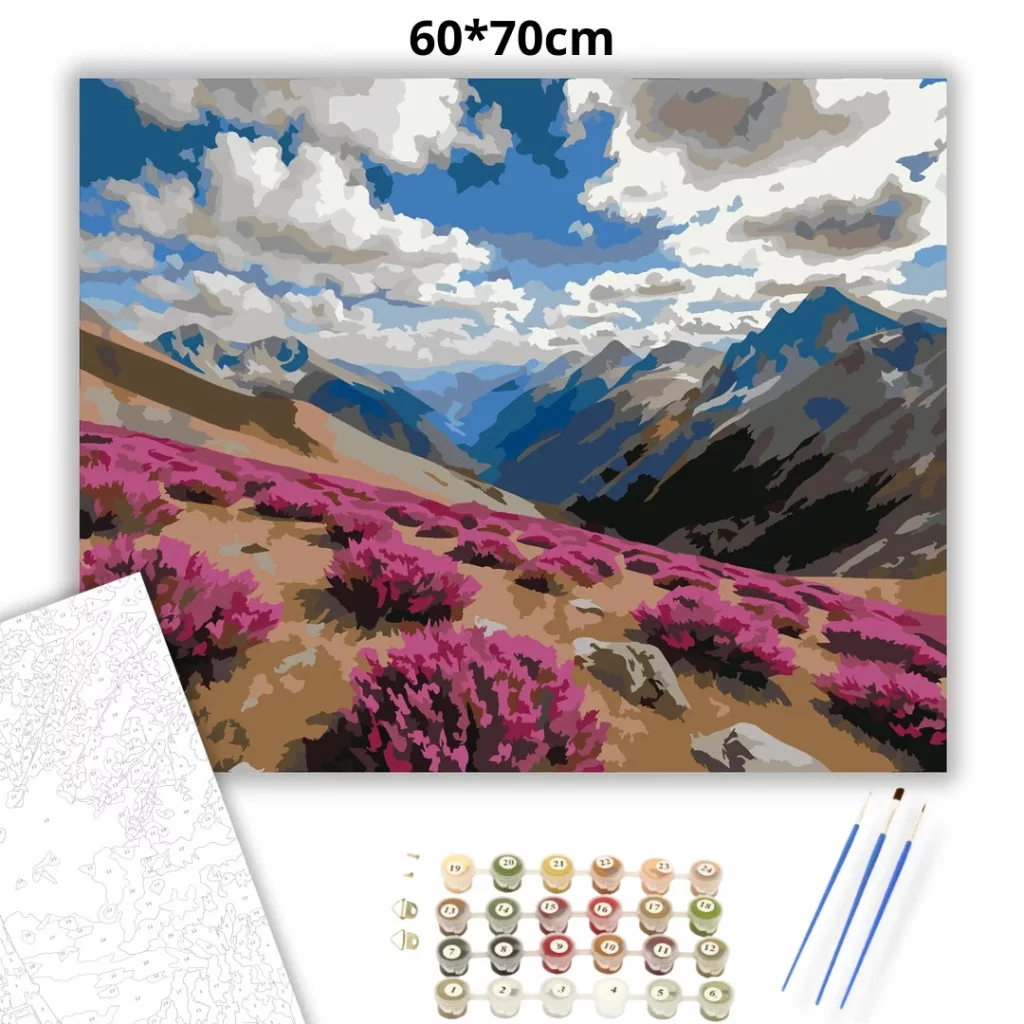 Szeles hegyoldali kilátás - számfestő készlet – 60×70 cm (Keretre feszítve)