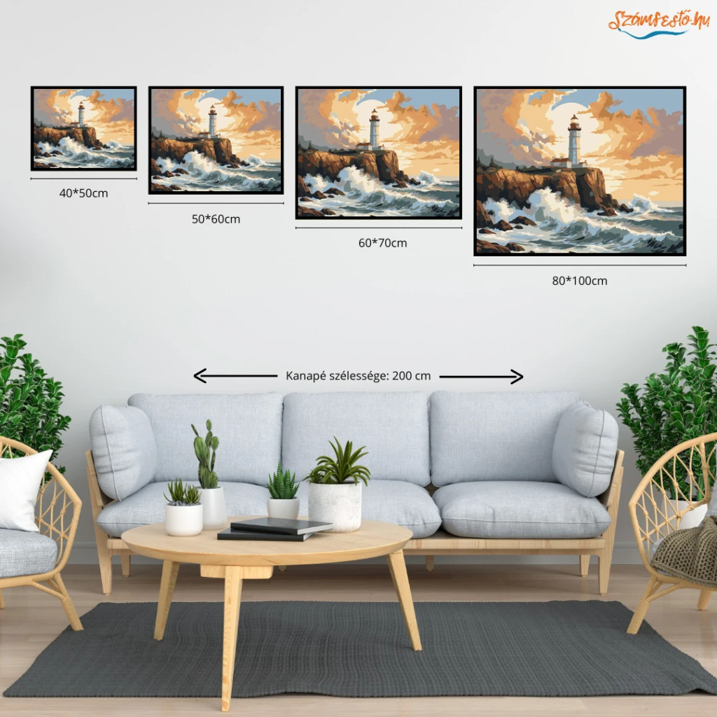 Sziklaparti őrtorony - számfestő készlet - Számfestő.hu - 80×100cm - Keret nélkül