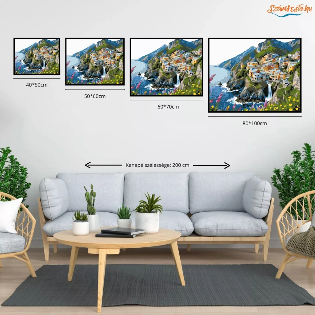 Sziklás tengerparti falu - számfestő készlet - Számfestő.hu - 50×60cm - Keret nélkül