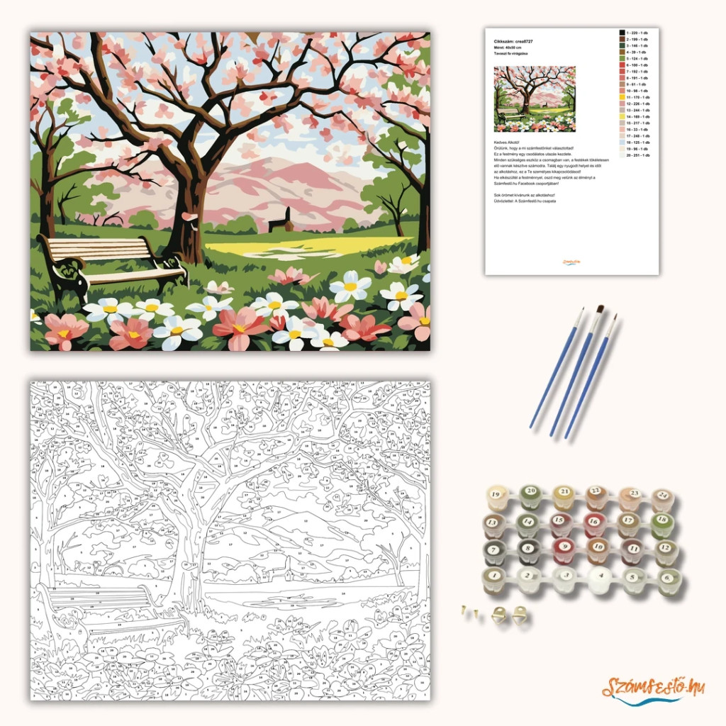 Tavaszi fa virágzása - számfestő készlet – 40×50 cm (Keret nélkül)