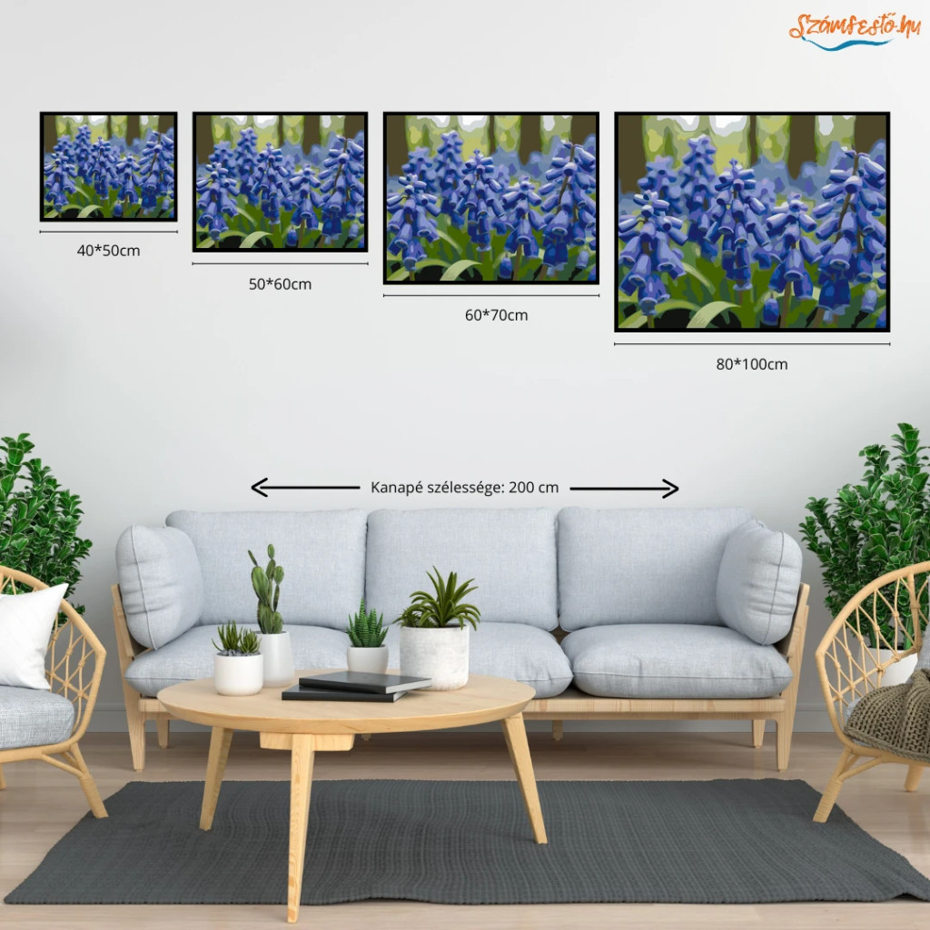 Tavaszi gyöngyikék - számfestő készlet - Számfestő.hu - 50×60cm - Keretre feszítve