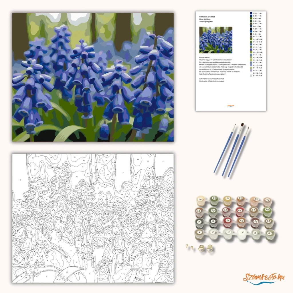 Tavaszi gyöngyikék - számfestő készlet - Számfestő.hu - 60×70cm - Keretre feszítve