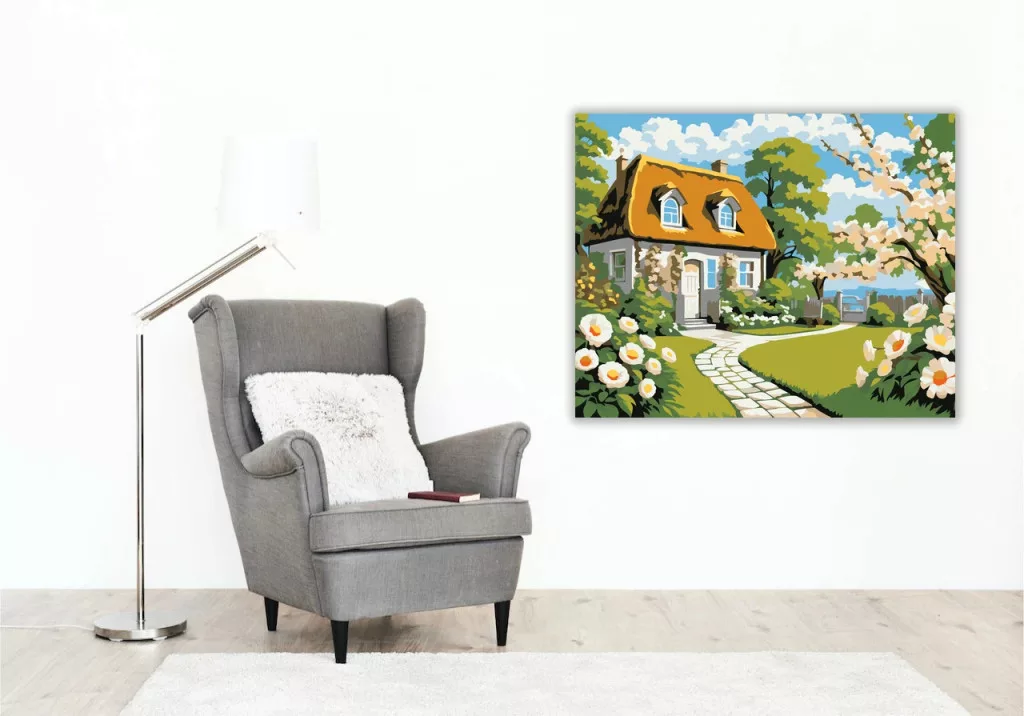 Tavaszi házikó - számfestő készlet – 40×50 cm (Keretre feszítve)