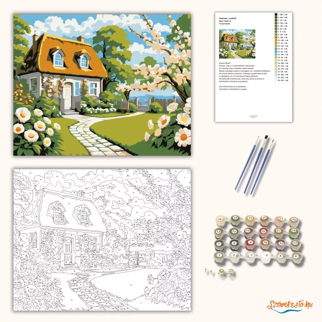 Tavaszi házikó - számfestő készlet – 50×60 cm (Keretre feszítve)