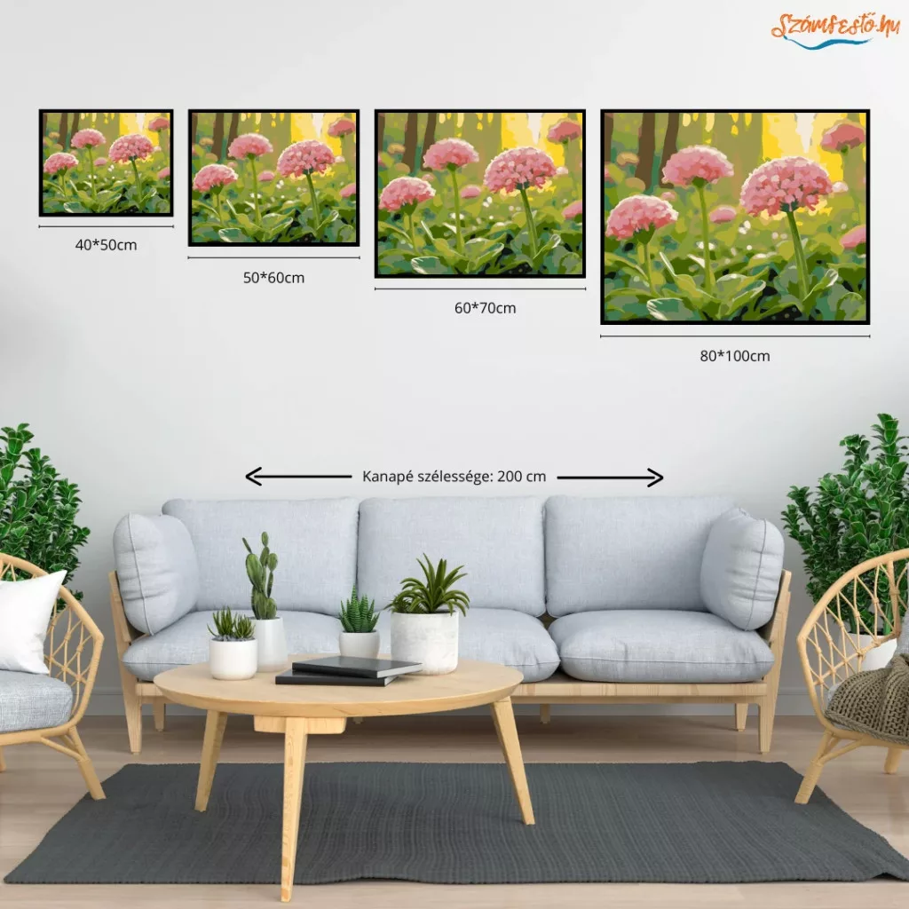 Méret, Itt tudod kiválasztani, hogy a számfestő készletet mekkora méretben szeretnéd megvásárolni. Minél nagyobb a kép, annál egyszerűbb megfesteni, mert a mezők is nagyobbak, így könnyebb a festés, mint a kisebb méreteknél. Méret :