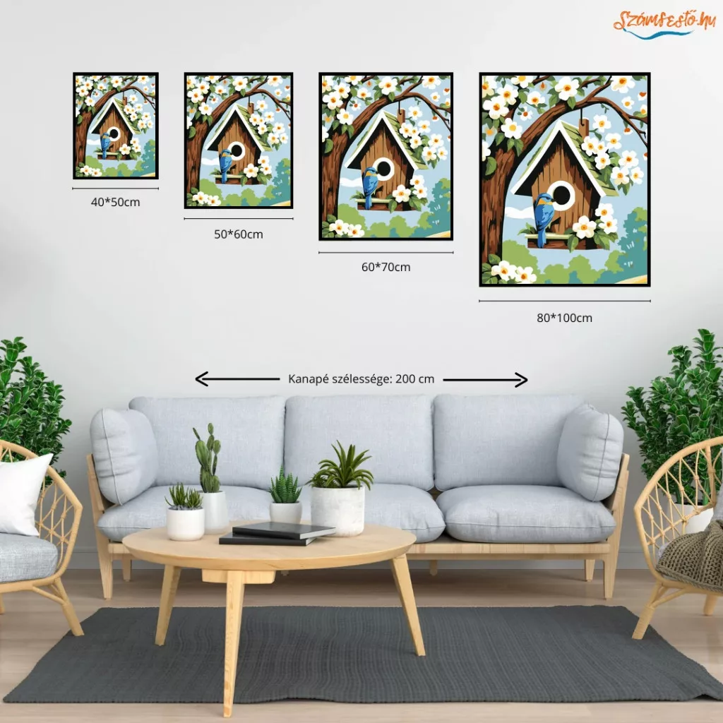 Tavaszi madárlak - számfestő készlet - Számfestő.hu - 60×70cm - Keret nélkül