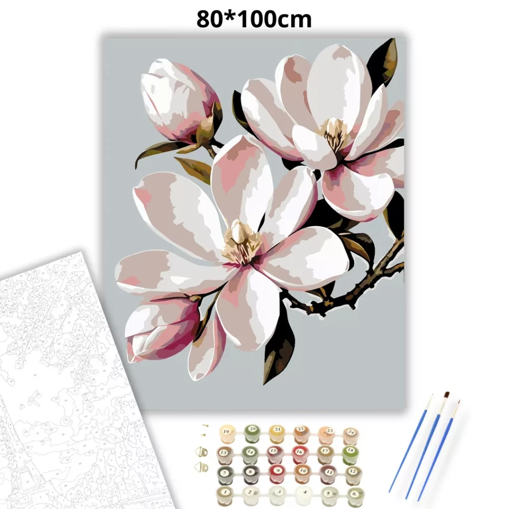 Tavaszi magnólia virág - számfestő készlet - Számfestő.hu - 80×100cm - Keret nélkül
