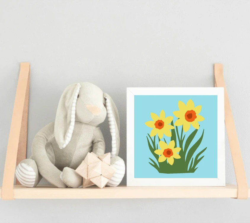 Tavaszi nárciszok - gyerek számfestő készlet – 20×20 cm (Keretre feszítve)