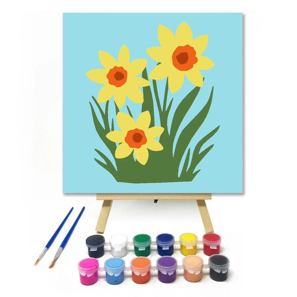 Tavaszi nárciszok - gyerek számfestő készlet – 50×50 cm (Keretre feszítve)