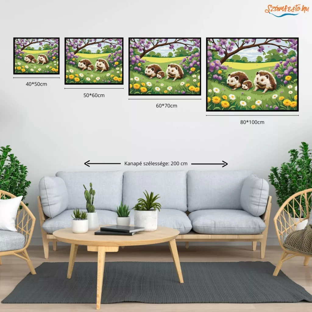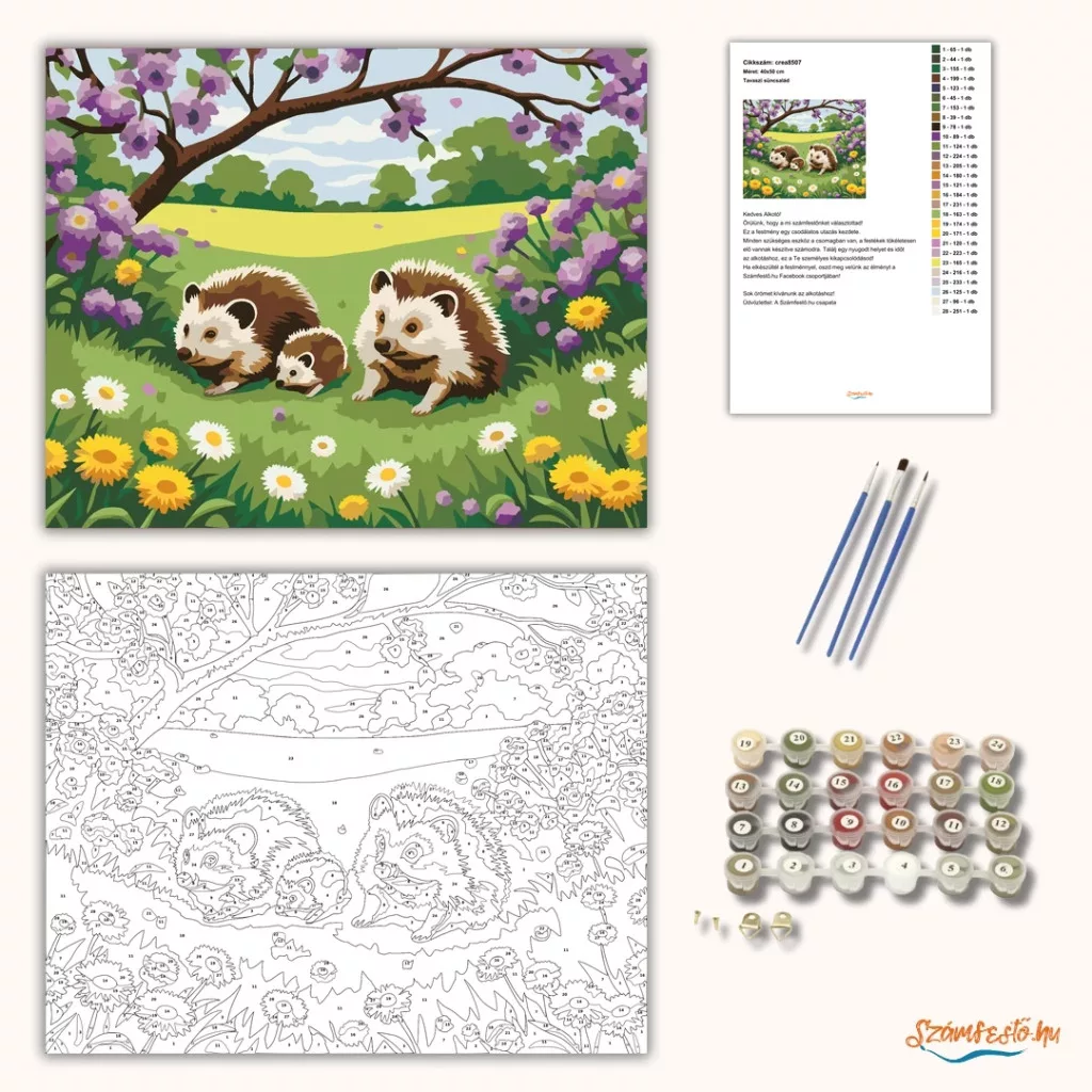 Tavaszi süncsalád - számfestő készlet – 50×60 cm (Keretre feszítve)