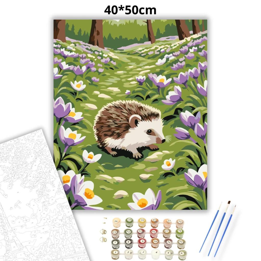Tavaszi sünike - számfestő készlet – 40×50 cm (Keret nélkül)