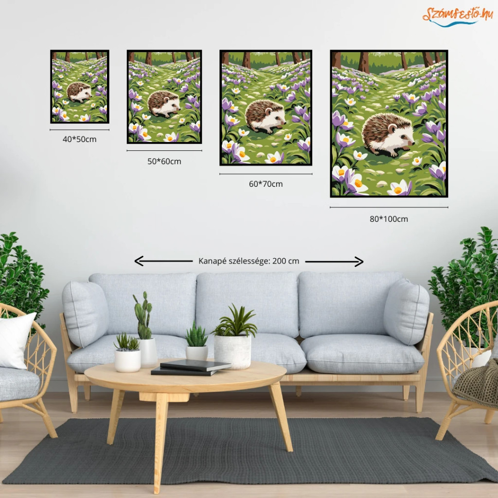 Tavaszi sünike - számfestő készlet - Számfestő.hu - 40×50cm - Keret nélkül