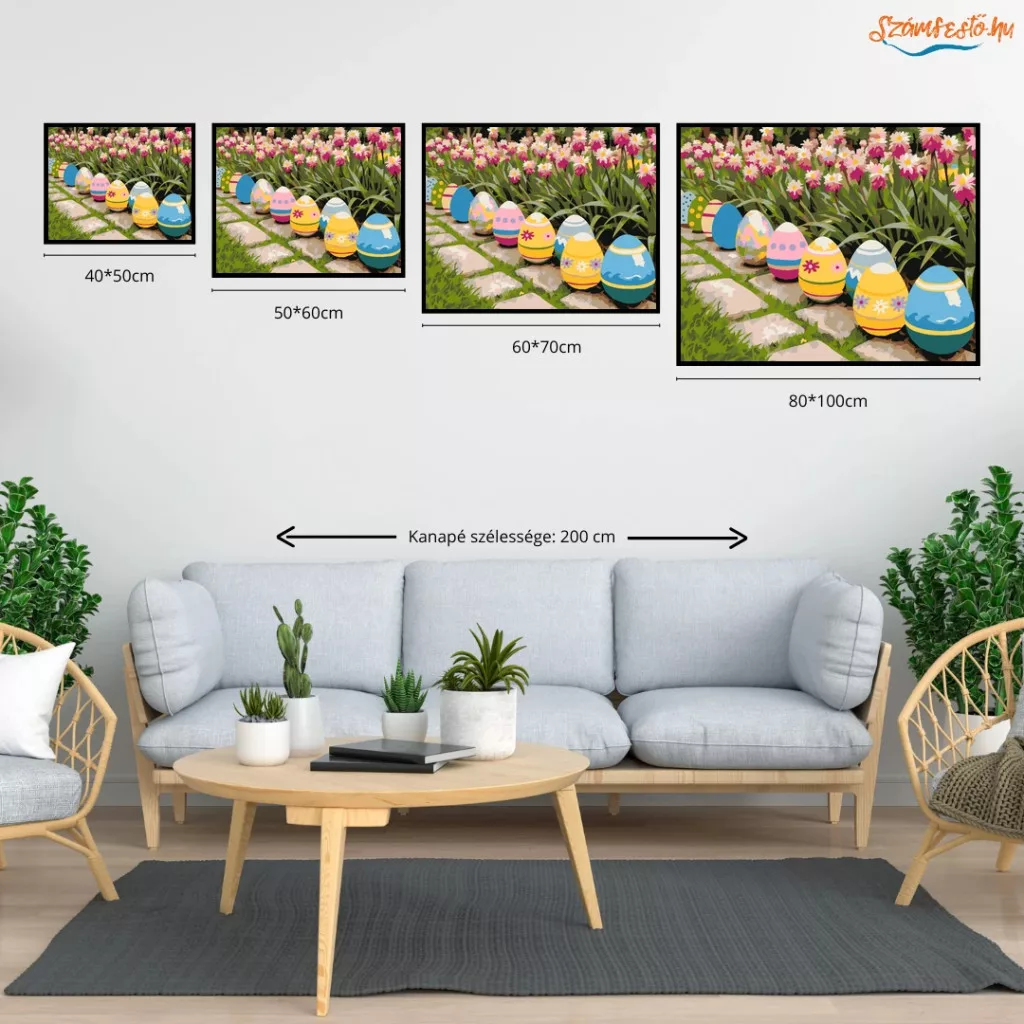 Tavaszi tojássor - számfestő készlet - Számfestő.hu - 60×70cm - Keretre feszítve