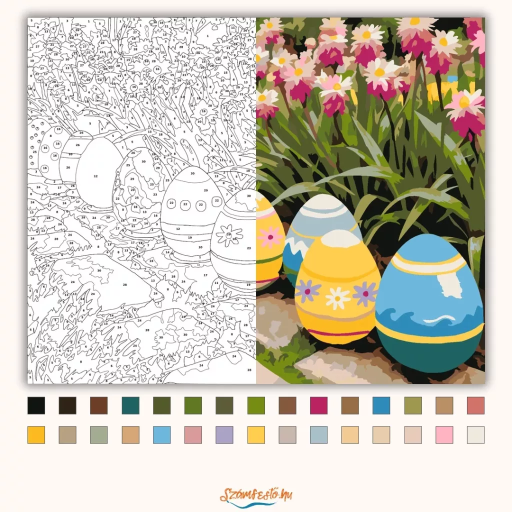 Tavaszi tojássor - számfestő készlet - Számfestő.hu - 80×100cm - Keret nélkül