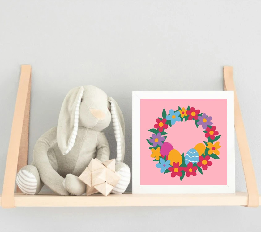 Tavaszi virágkoszorú tojásokkal - gyerek számfestő készlet - Számfestő.hu - 20×20cm - Keret nélkül