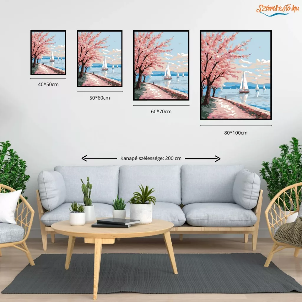 Tavaszi vitorlások a Balatonon - számfestő készlet – 40×50 cm (Keretre feszítve)