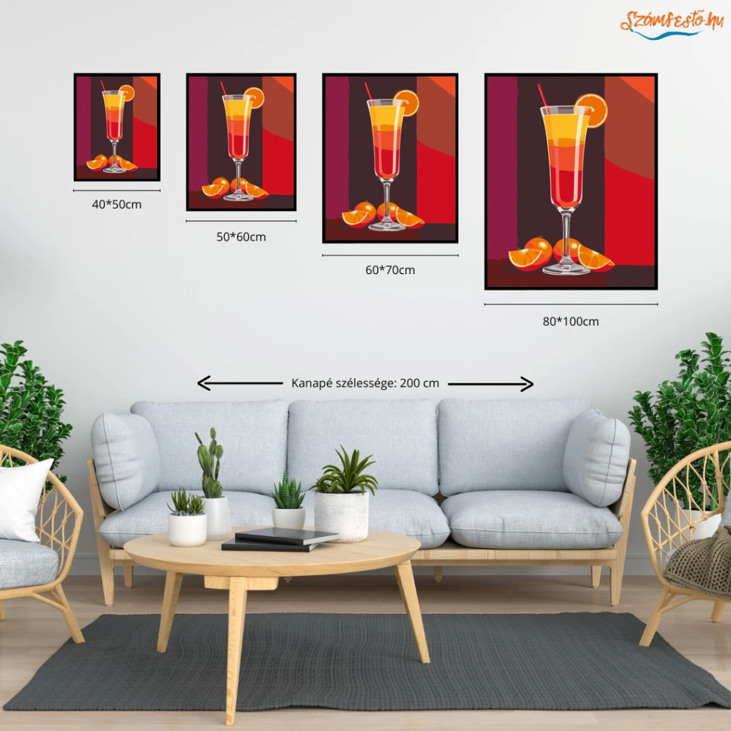 Tequila Sunrise koktél - számfestő készlet - Számfestő.hu - 60×70cm - Keret nélkül