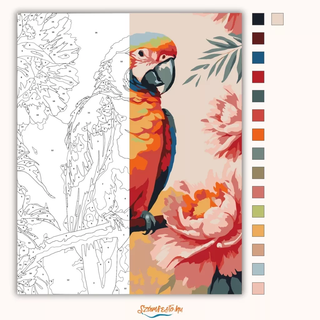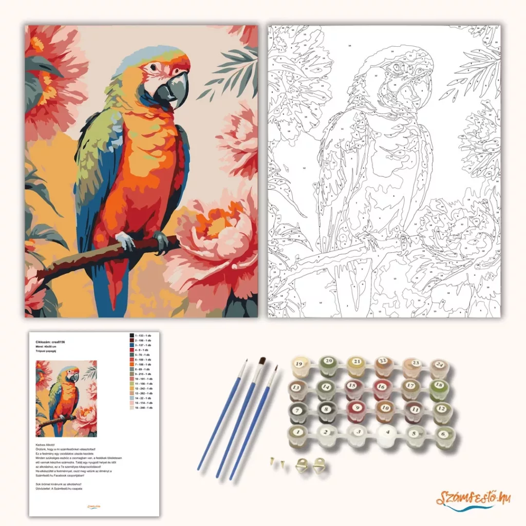 Trópusi papagáj - számfestő készlet - Számfestő.hu - 40×50cm - Keret nélkül