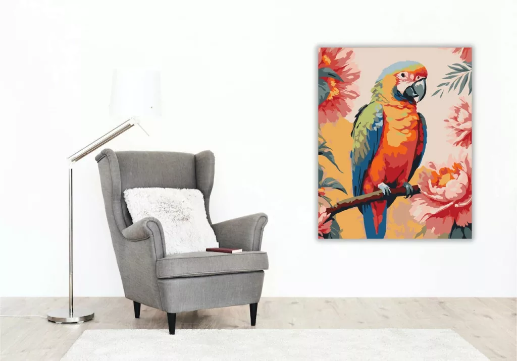 Trópusi papagáj - számfestő készlet – 40×50 cm (Keret nélkül)