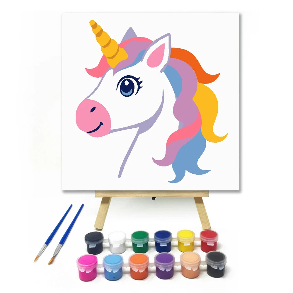 Tündéri unikornis varázsa - gyerek számfestő készlet – 20×20 cm (Keretre feszítve)