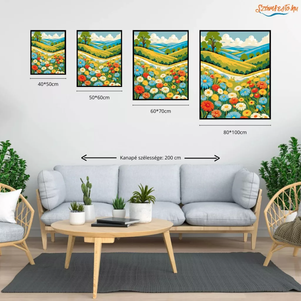 Méret, Itt tudod kiválasztani, hogy a számfestő készletet mekkora méretben szeretnéd megvásárolni. Minél nagyobb a kép, annál egyszerűbb megfesteni, mert a mezők is nagyobbak, így könnyebb a festés, mint a kisebb méreteknél. Méret :