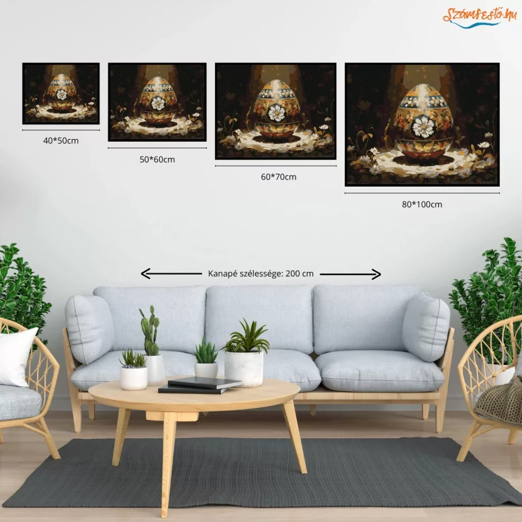 Ünnepi hímes tojás - számfestő készlet – 40×50 cm (Keretre feszítve)