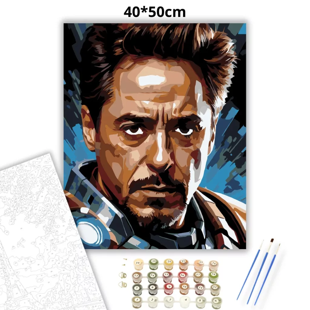 A képen Tony Stark látható csatában megviselt arccal. Tekintete felfelé irányul, elszántság és belső küzdelem tükröződik benne. A háttér dinamikus, kékes energiával telített, amely kiemeli a jelenet drámaiságát. A kép egy végső döntés pillanatát ragadja meg, ahol a hősiesség és az áldozat találkozik. Díszítsd otthonodat saját kézzel készített műalkotással, vagy ajándékozd meg szeretteidet egy igazán különleges élménnyel! A számfestő készletben minden szükséges eszköz megtalálható a festmény elkészítéséhez.