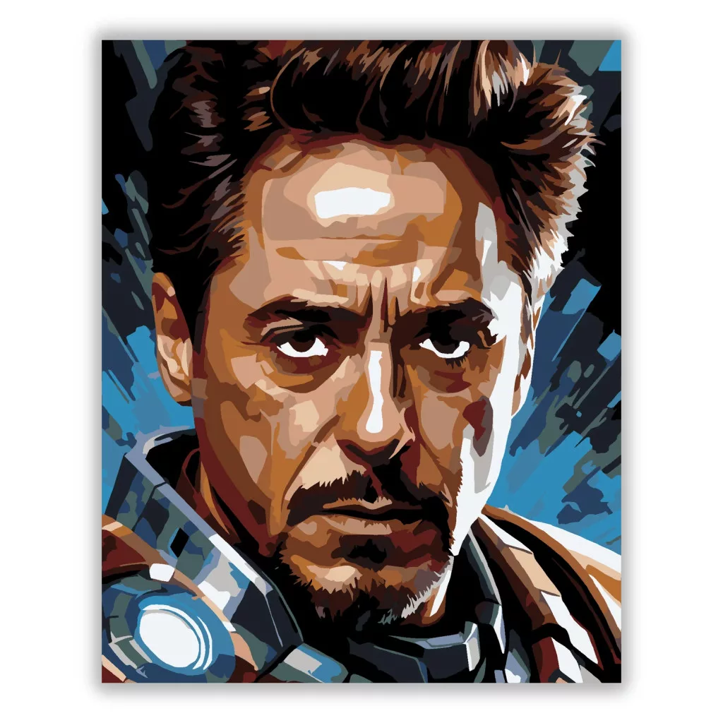 A képen Tony Stark látható csatában megviselt arccal. Tekintete felfelé irányul, elszántság és belső küzdelem tükröződik benne. A háttér dinamikus, kékes energiával telített, amely kiemeli a jelenet drámaiságát. A kép egy végső döntés pillanatát ragadja meg, ahol a hősiesség és az áldozat találkozik. Ez a számfestő készlet tökéletes választás, ha egyedi dekorációval tennéd szebbé otthonodat, vagy ha különleges ajándékot keresel. A csomagban minden megtalálható, amire a festéshez szükséged van.