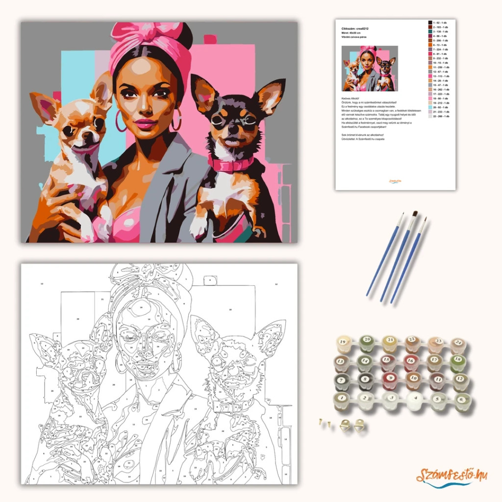 Vibráló csivava páros - számfestő készlet - Számfestő.hu - 40×50cm - Keret nélkül