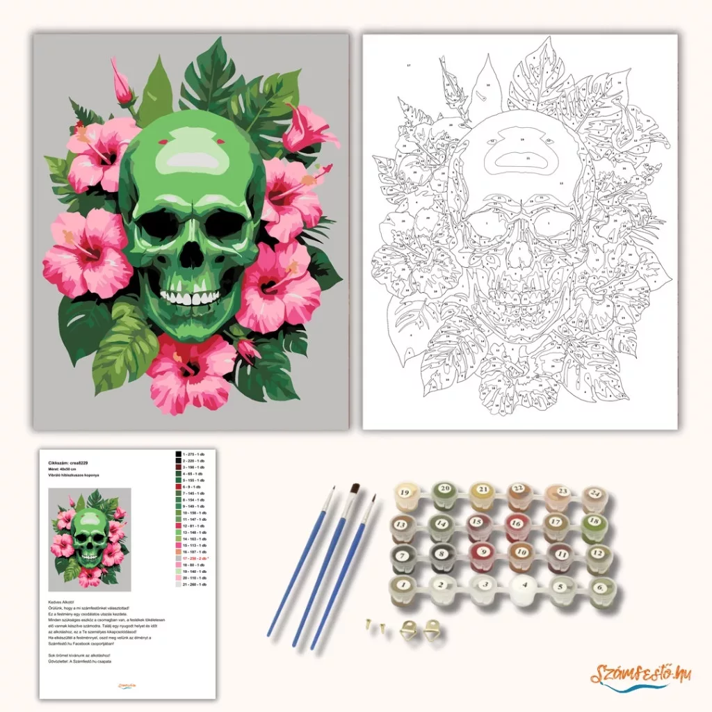 Számfestő készlet - Vibráló hibiszkuszos koponya