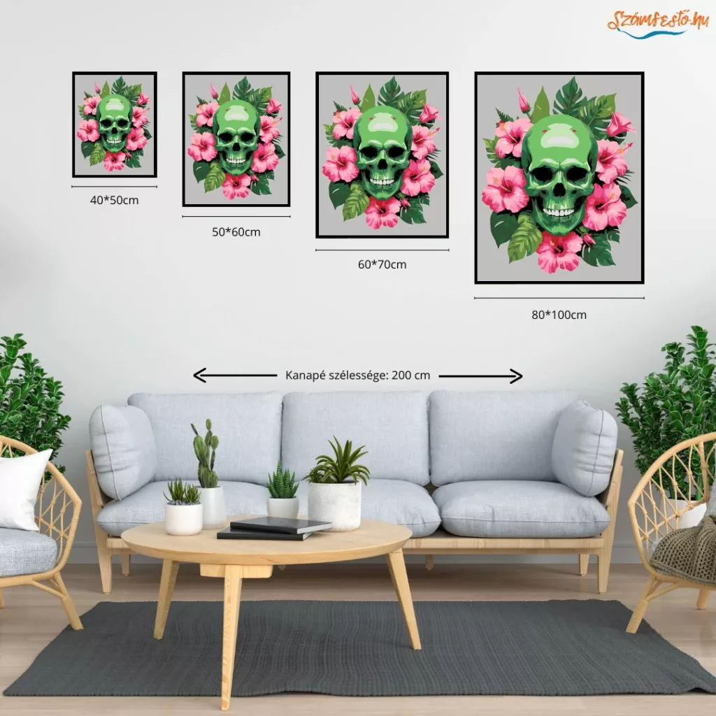 Vibráló hibiszkuszos koponya - számfestő készlet - Számfestő.hu - 60×70cm - Keret nélkül