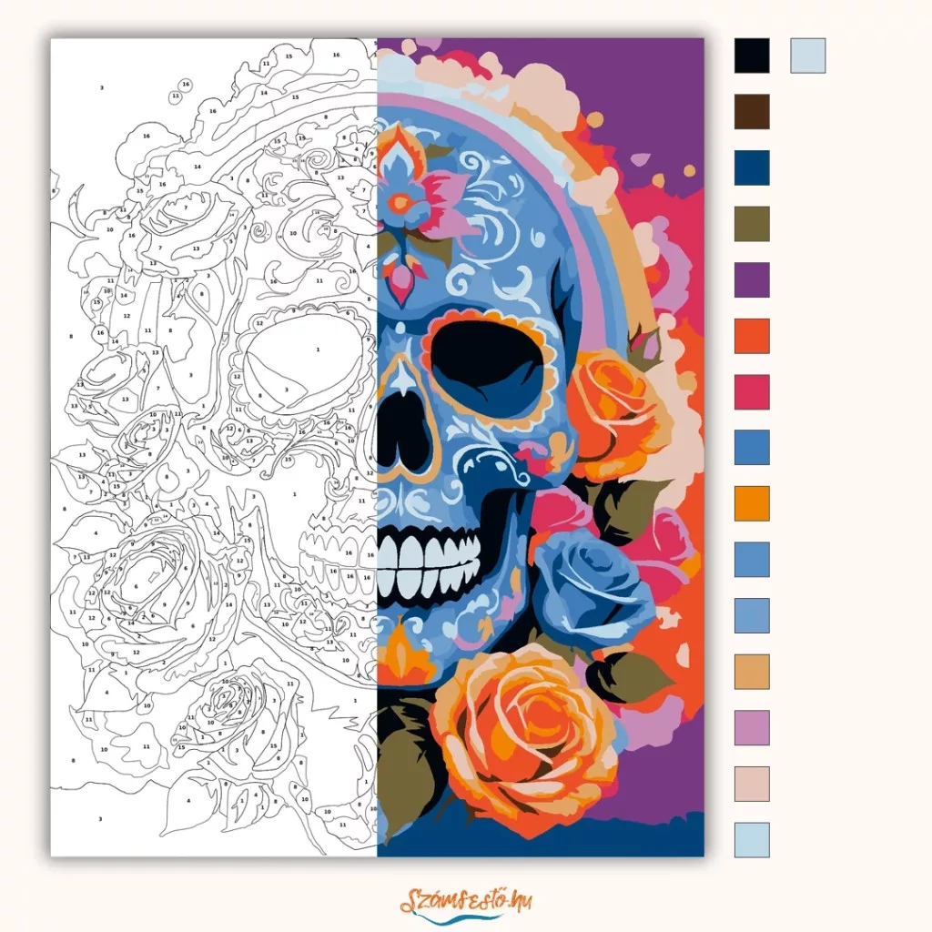 Számfestő készlet - Vibráló rózsakoszorú koponya