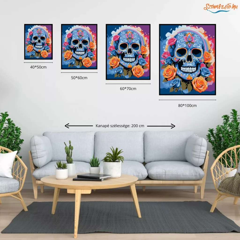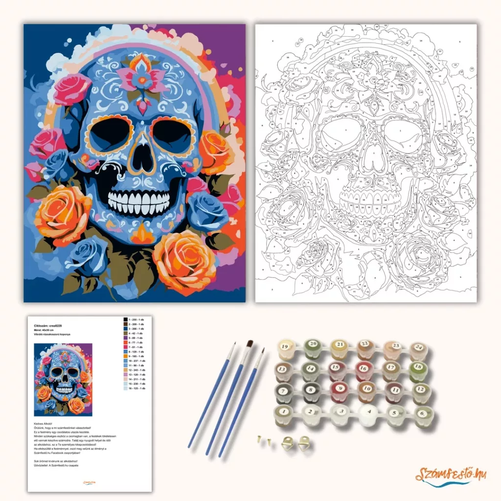 Vibráló rózsakoszorú koponya - számfestő készlet – 50×60 cm (Keretre feszítve)