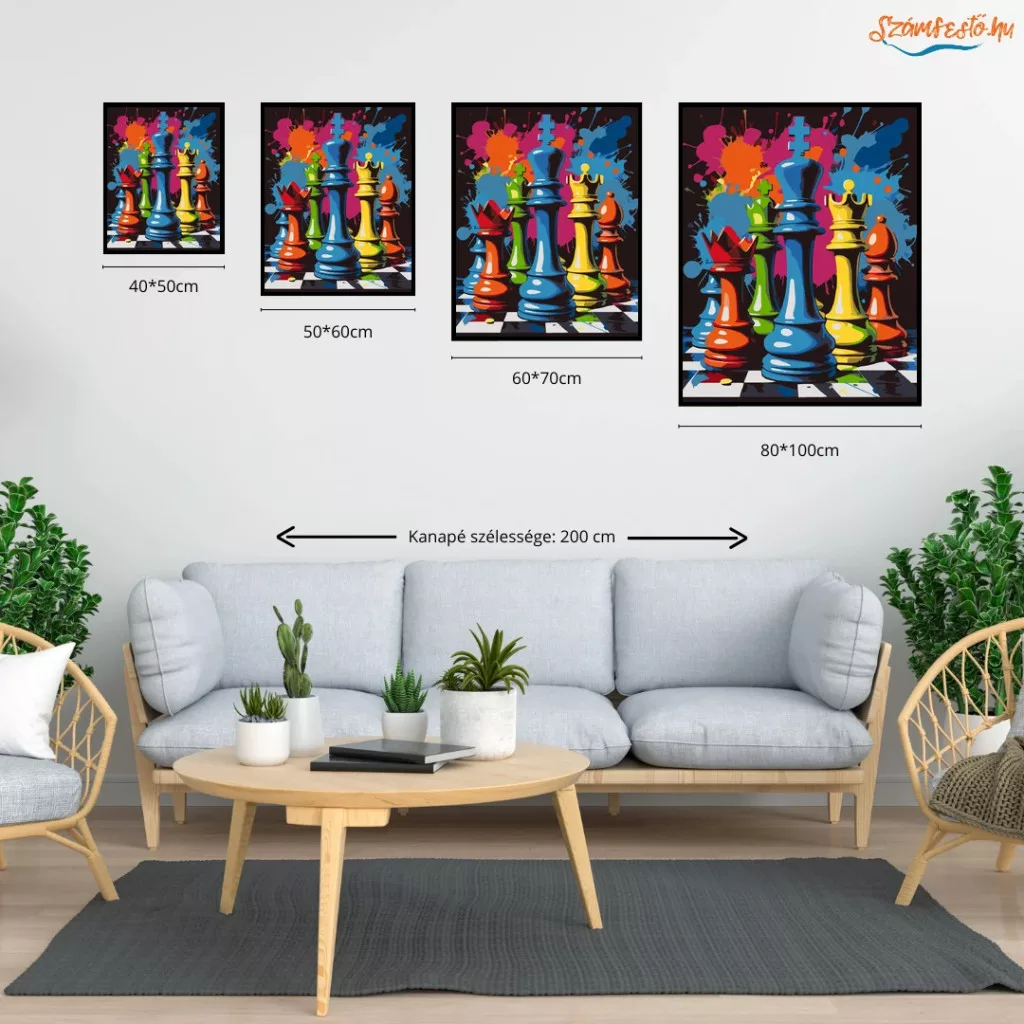 Vibráló sakkfigurák - számfestő készlet - Számfestő.hu - 40×50cm - Keret nélkül