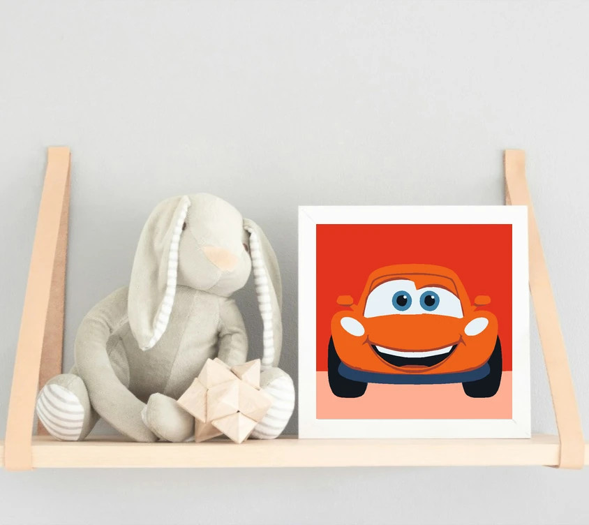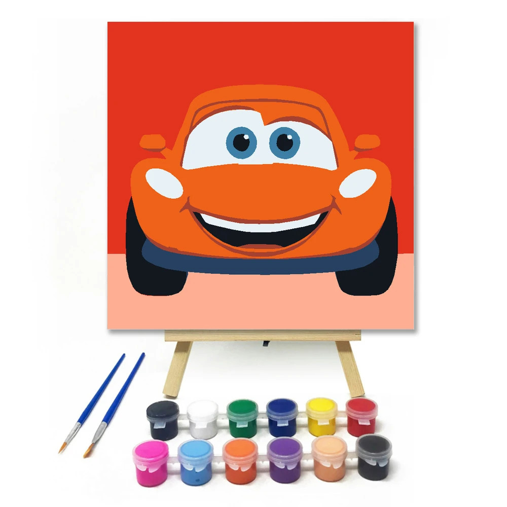Vidám autó mosolya - gyerek számfestő készlet - Számfestő.hu - 30×30cm - Keret nélkül