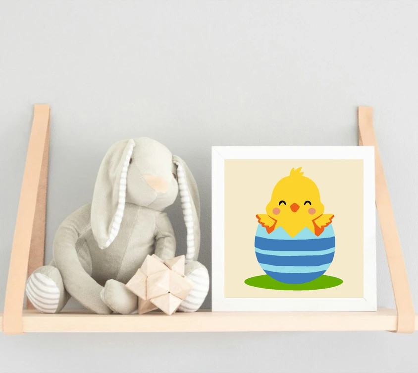 Ezen a képen egy vidám kiscsibe bújik ki egy nagy, csíkos tojásból, és mosolyogva tárja szét a szárnyait. A sárga csibe mellett a kék árnyalatú tojás és a zöld fű dominál. Díszítsd otthonodat saját kézzel készített műalkotással, vagy ajándékozd meg szeretteidet egy igazán különleges élménnyel! A számfestő készletben minden szükséges eszköz megtalálható a festmény elkészítéséhez.