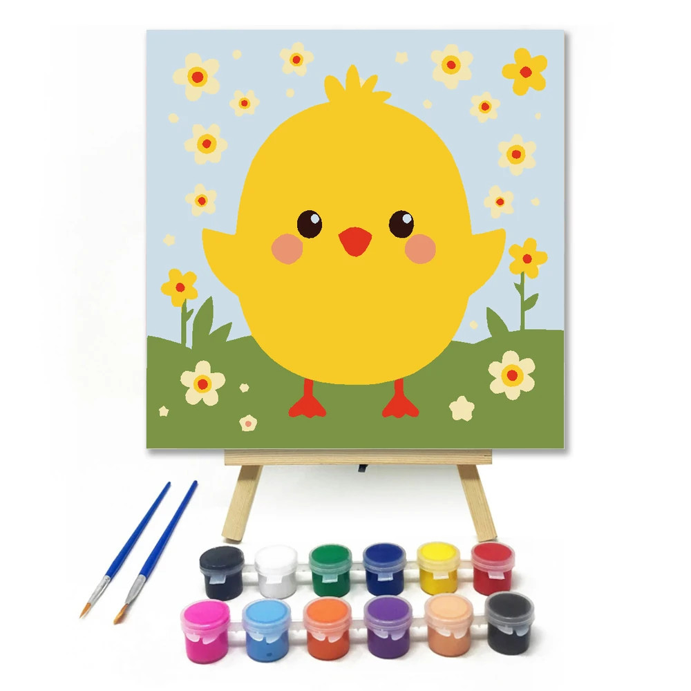 Vidám csibe virágokkal - gyerek számfestő készlet