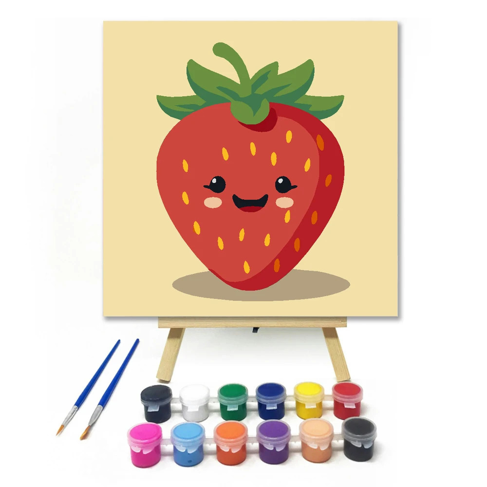 Vidám eper napja - gyerek számfestő készlet – 40×40 cm (Keret nélkül)