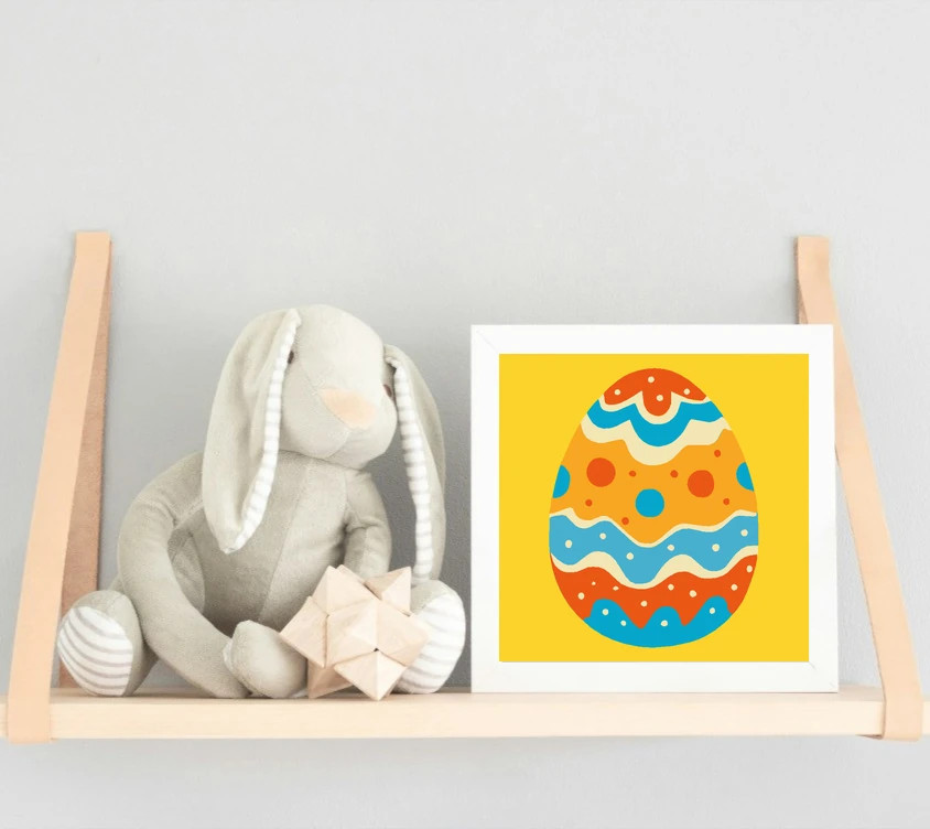 Ez a nagy húsvéti tojás vidám pöttyökkel és hullámos csíkokkal van díszítve. A sárga háttérből szépen kiemelkednek a kék, narancs és piros színek. Szuper választás, ha szereted a mintás képeket! Díszítsd otthonodat saját kézzel készített műalkotással, vagy ajándékozd meg szeretteidet egy igazán különleges élménnyel! A számfestő készletben minden szükséges eszköz megtalálható a festmény elkészítéséhez.