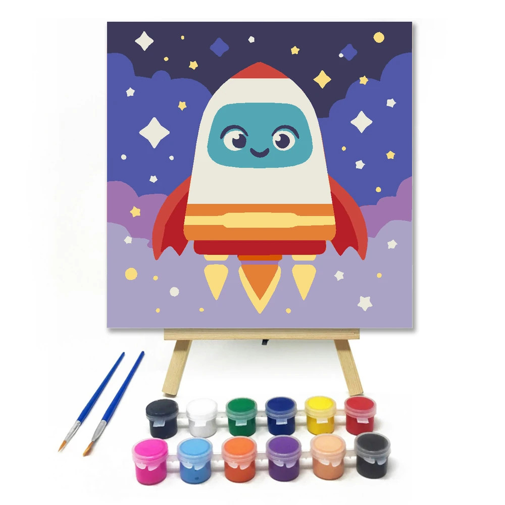 Vidám rakéta útja - gyerek számfestő készlet – 20×20 cm (Keretre feszítve)